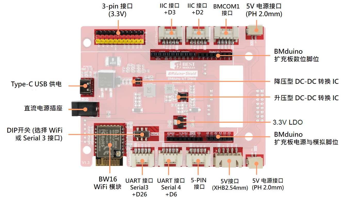 - 板载无线模块:BW16(Wi-Fi + BLE 5.0)